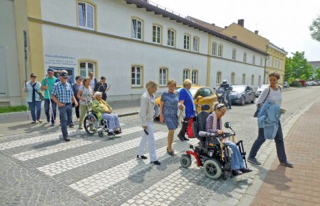 Teilnehmer mit und ohne Behinderungen beim Stadtrundgang in Erding